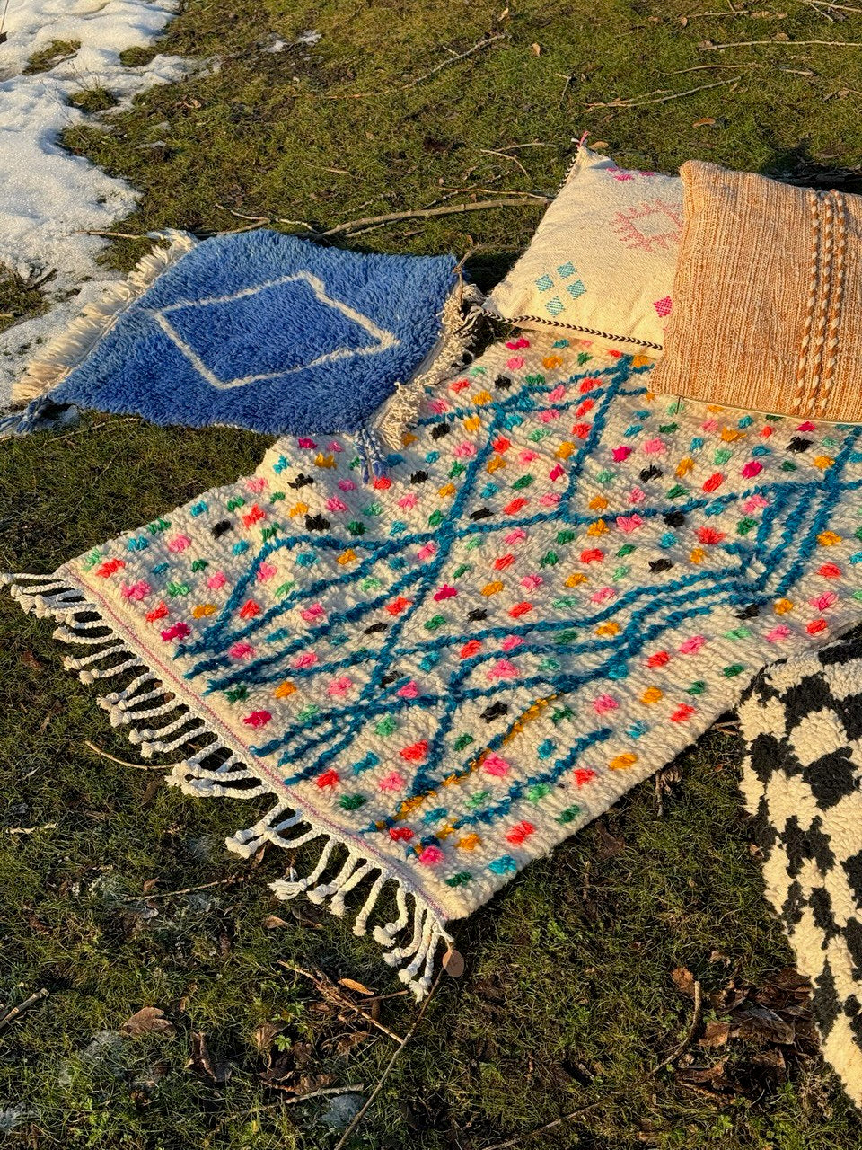 Berber hand woven rug made from natural materials and with a great symbolic load, Every rug is personally chosen to offer you the most beautiful berber rugs.
