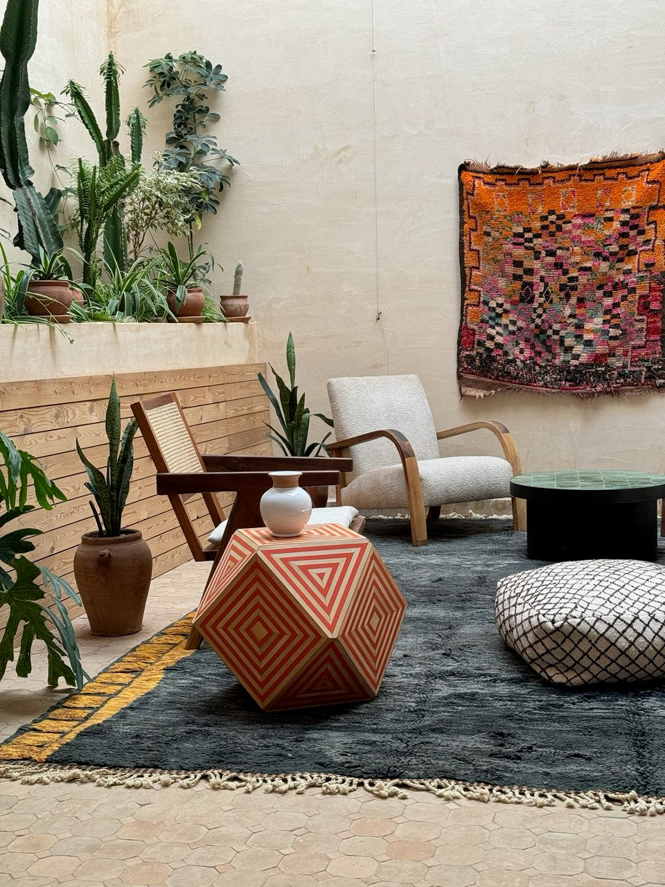 Iso Zayane matto valtasi huoneen värillään ja akustiikan muutoksella. Ihanan pehmeä ja lämmin. Kasvisvärin punainen sävykäs. Toivon että joskus näihin vintage mattoihin saataisiin QR koodi josta löytyy materiaalia kutojasta sekä heimon elämästä. Matolla on tarina ja myös henki.